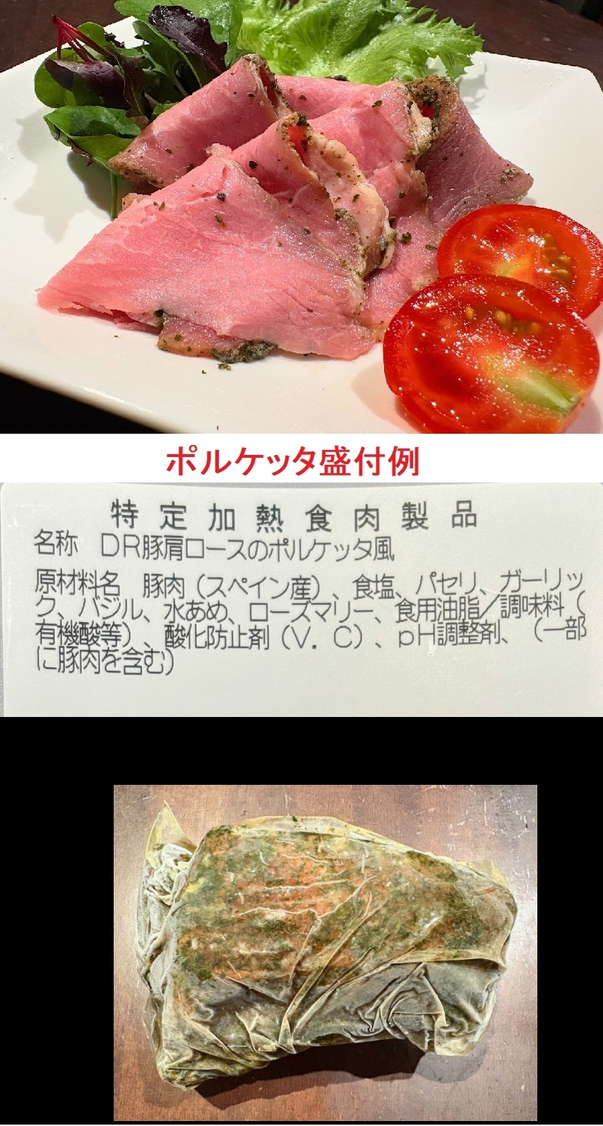 脂身がほどよいスペイン産「肩ロース」を使用。イタリア伝統のポルケッタをイメージした、バジル香るさっぱりローストポークです。