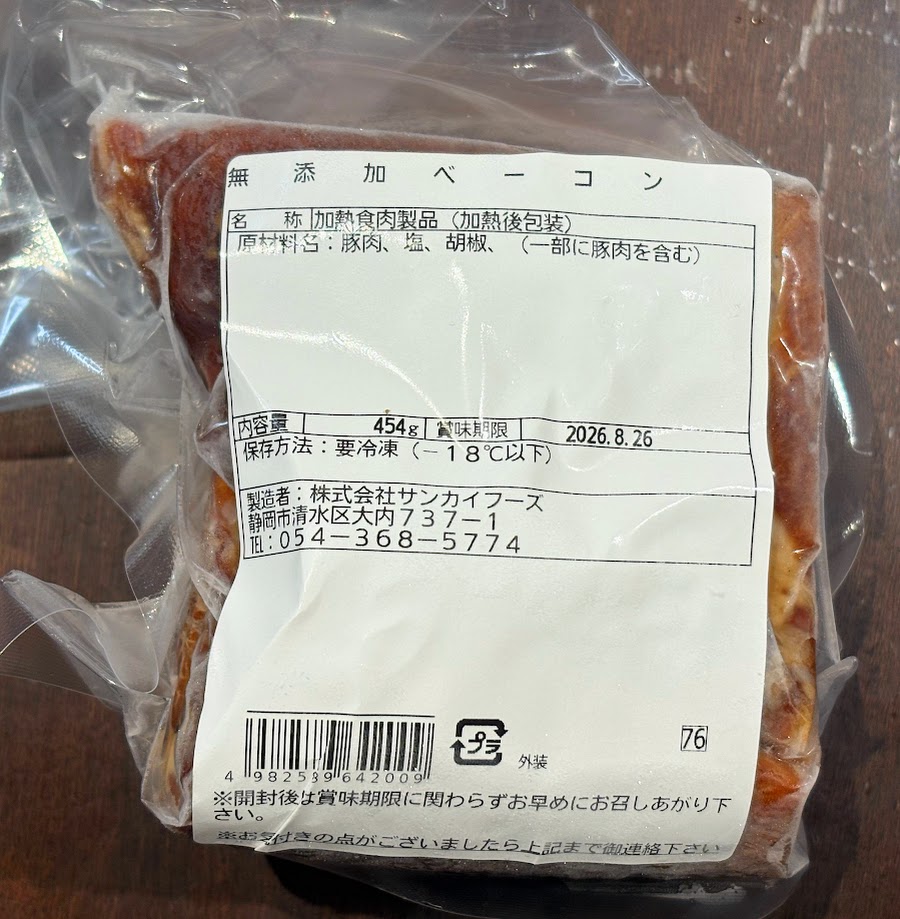 【原材料は豚肉・塩・胡椒のみ】肉本来の旨みを極めた純粋ベーコン 454g個